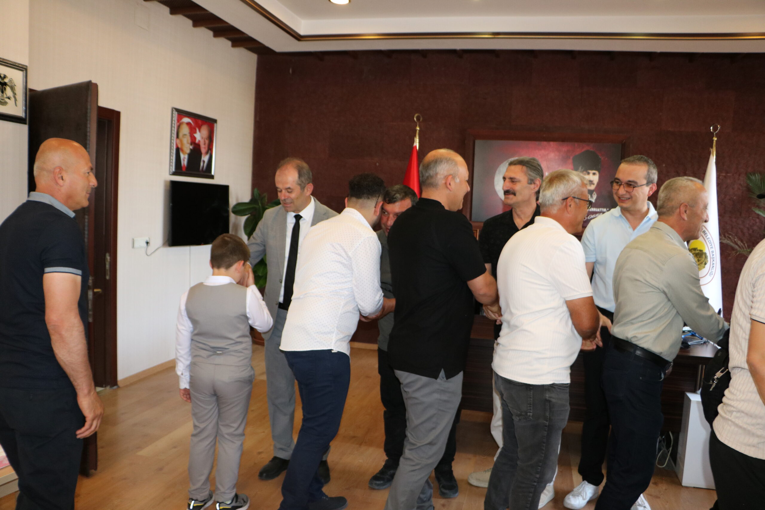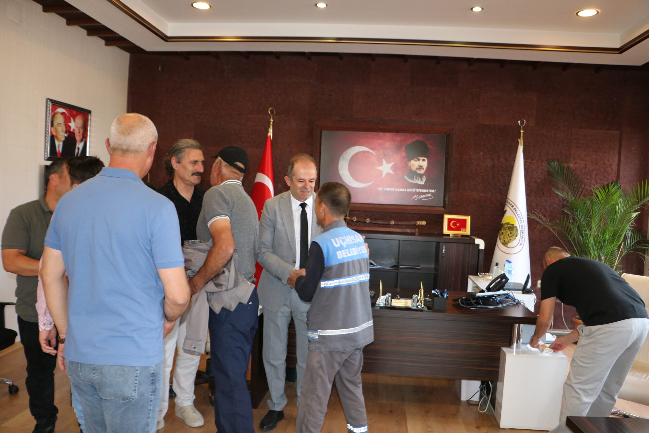 Uçhisar Belediye Başkanı Abdullah ÇAMCI ve Belediye Meclis Üyeleri, Kurban Bayramı’nın ikinci günü, öğle namazından sonra Belediye Hizmet Binasında vatandaşlarla ve belediye personeliyle bayramlaştı. Yoğun bir katılımla gerçekleşen bayramlaşma töreninde Başkan ÇAMCI; “Birlik ve beraberliğimizin daha da güçlenmesine vesile olmasını diliyor ve halkımızın Kurban Bayramını en içten dileklerimle kutluyorum” dedi.