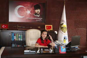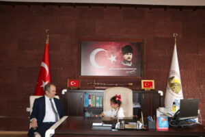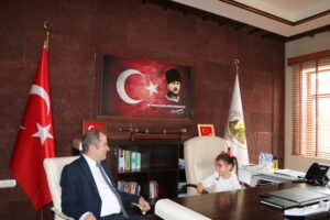 Programın ardından öğrenciler Uçhisar Belediyesini ziyaret ederek Belediye Başkanı Abdullah ÇAMCI’ nın makamına konuk oldu. Temsili olarak makam koltuğuna oturan öğrencilerle keyifli bir sohbet gerçekleştiren Başkan ÇAMCI, çocukların mutluluğuna ortak oldu.